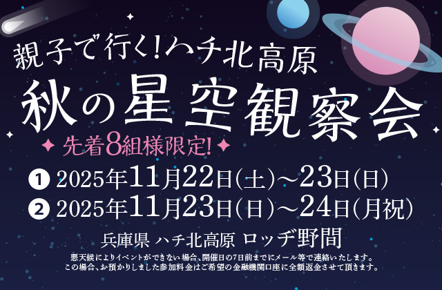 - 夏休み企画!!親子で行くハチ北高原 虫とり&ライトトラップ2023募集開始致しました。 (2023.5.13)