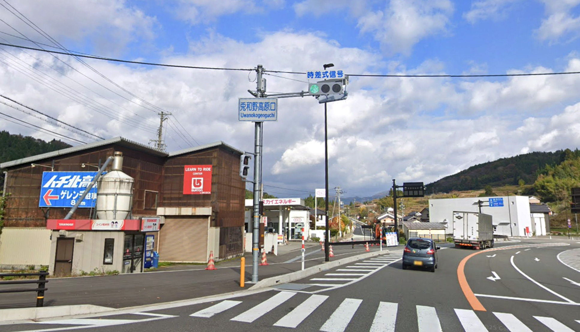 「兎和野高原口」を左折後、約3.2km先を左折です。